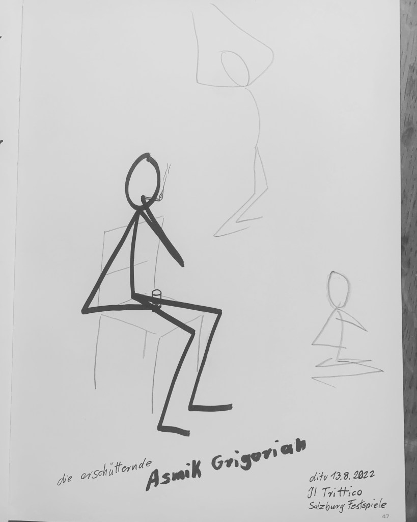 Zutiefst berührend erstrahlt durch Gesang, Spiel und Bühnenpräsenz – die italienische Sopranistin Asmik Grigorian getragen von einem die Oper tragend unterstützendem Bühnenbild von Etienne Pluss und meisterlicher Regie von Chtistof Loy.