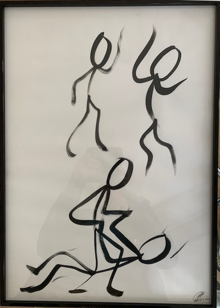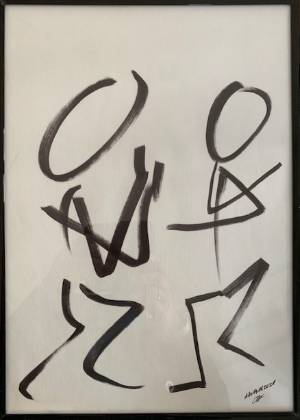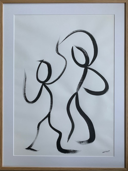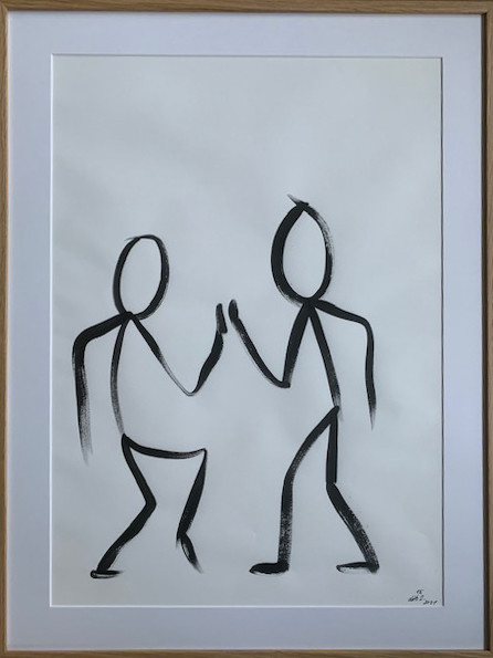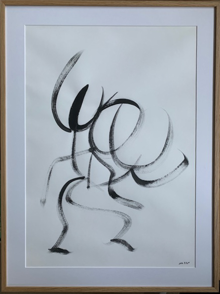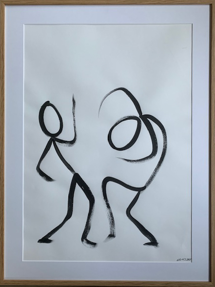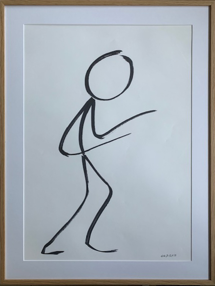 Acryl auf Papier, gerahmt in Eichenholz, entspiegeltes Glas.