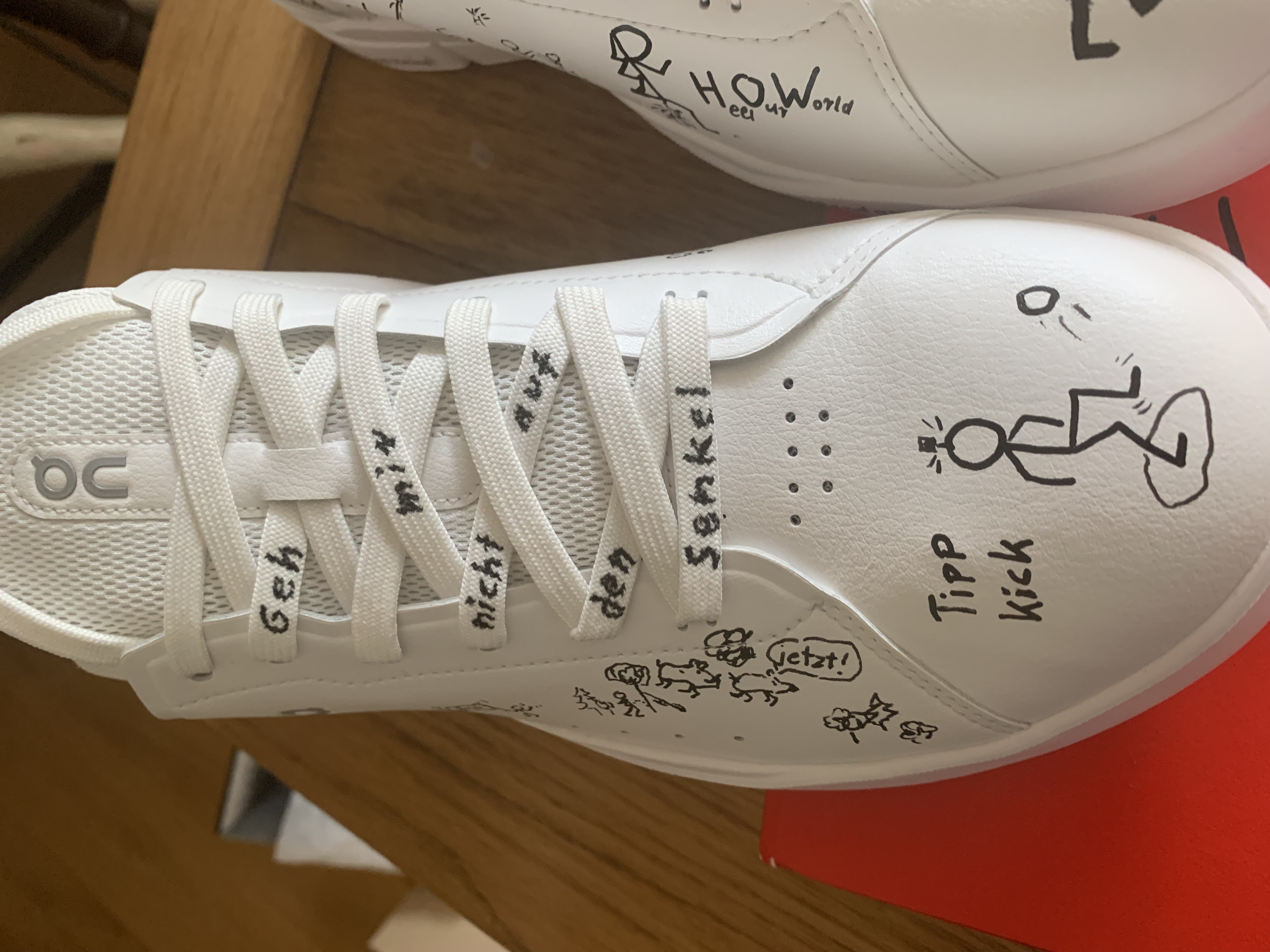 - Schickt uns bitte weiße Sneakers an die folgende Adresse zu: Büro Horstmann, F. W. Raiffeisenstraße 1, 5061 Elsbethen, Salzburg, Österreich.
