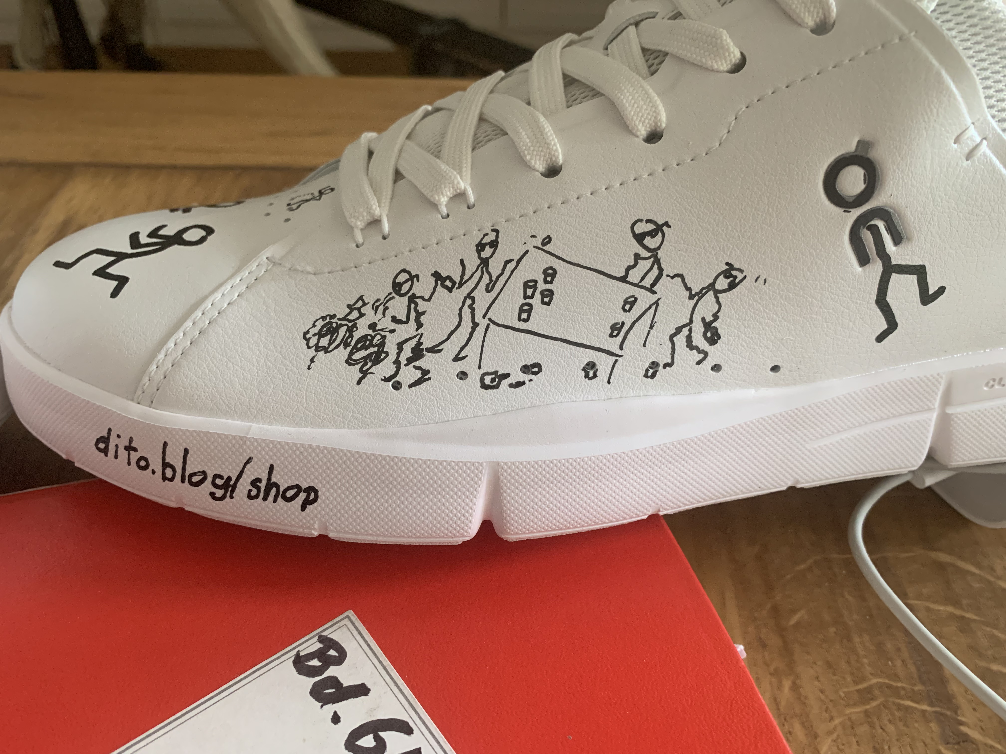 Auf vielfachen Wunsch werden bevorzugt die rein weißen dito Sneakers – the Roger, Center Court – für euch personalisiert gezeichnet.